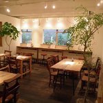 店内は天井が高く、観葉植物があちこちに飾られ、木のぬくもりが感じられる癒しの空間が広がります。